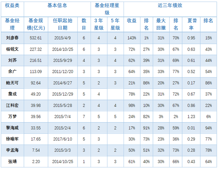 百亿明星基金经理4人,其中刘彦春管理总规模超过500亿;