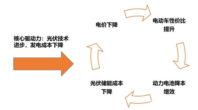 光伏发电成本快速下降,倒逼电价稳步降低,电力需求提升,电动车性价比持续提升,倒逼动力电池进步,动力电池降本增效,储能电池性价比提升,各种应用场景纷纷进入盈亏平衡点,又提升了电力的需求。这是一个正向的完整的循环。