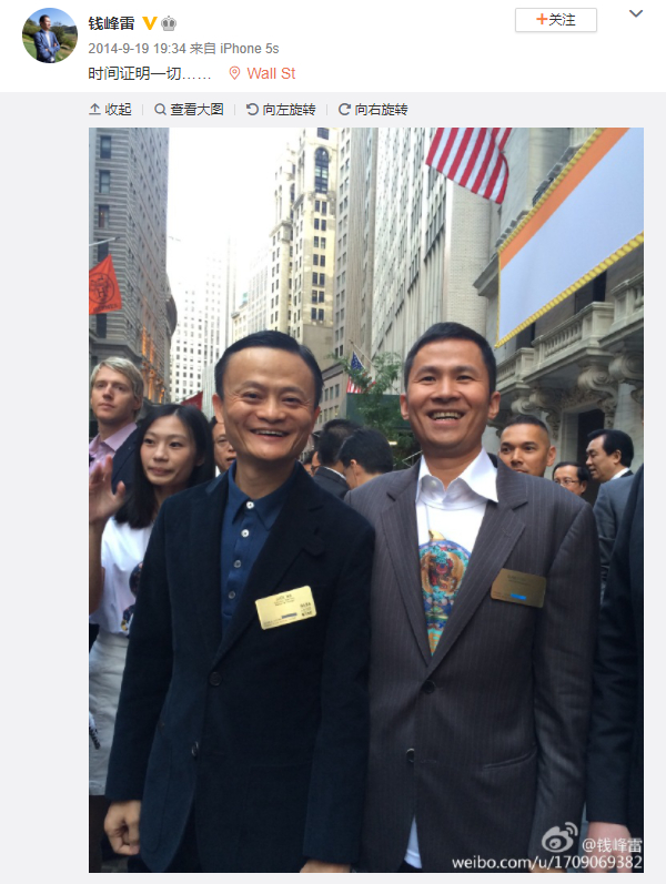 公开信息显示,钱峰雷多次出现在马云的重要场合中。