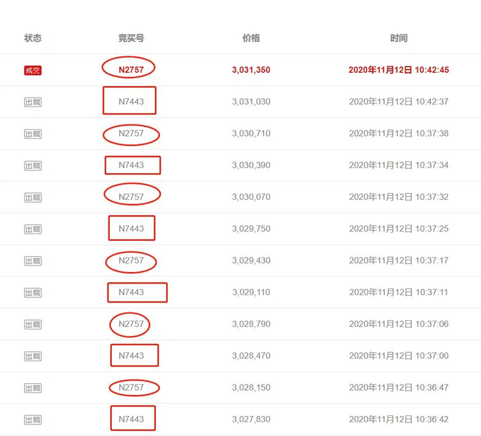 根据竞买纪录,高价竞拍当中,N2757与N7443两位买家竞争激烈,成为推高拍卖价的重要买手。
