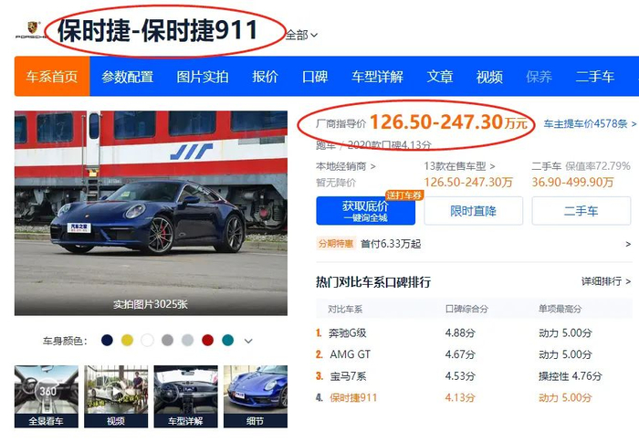 高端跑车,保时捷911的指导价也就126.5万元到247.3万元。
