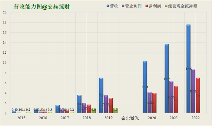 帝尔激光该指标优秀,整体处于优秀区间位置,获利能力很强。