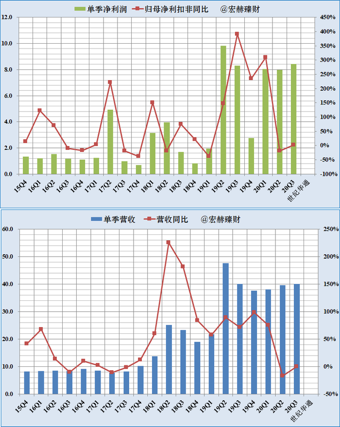 单季度净利润、营收及增长率趋势图