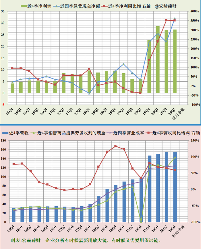 滚动近四季净利润、营收及增长率趋势图