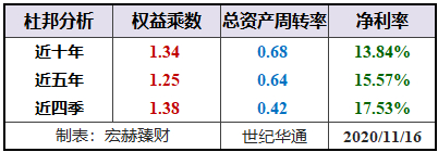 宏赫臻财建议关注未来杜邦指标趋势呈现:【低杠杆或适度杠杆(1.2-3)+周转率接近或大于1且有向上趋势+稳健增长的中高净利率>15%】