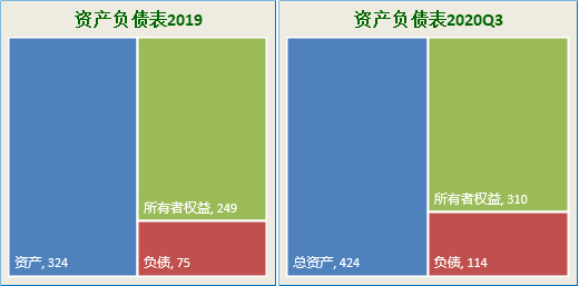 [注]:2020年Q3总资产【424】亿;净资产【310】亿,负债【114】亿;