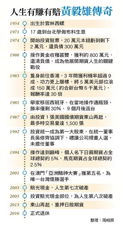 他是台湾地区金融市场口耳相传、却从未亲眼见证的传奇。也有人形容,他是全台湾唯一具有国际知名度的金融交易者。他17岁只身来到台北,靠期货交易起家,高峰时,持有的日元期货部位占全球市场5%左右。与他相识多年的元大证券董事长贺鸣珩回忆:“当年亲眼看着他的交易,一路走来始终如一,实在很罕见,他当然是台湾在国际上一号重要人物。”