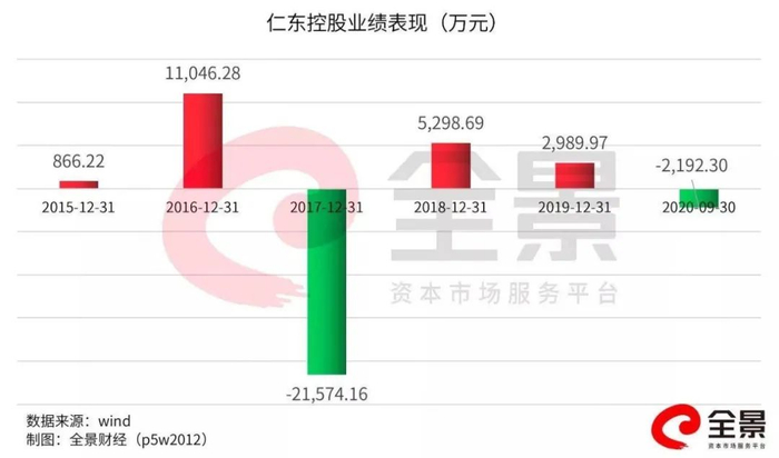 但自2018年以来,仁东控股的业绩呈现下滑趋势,2020年三季报显示,仁东控股前三季度业绩亏损0.38亿元,较上一年同期下滑186.52%。