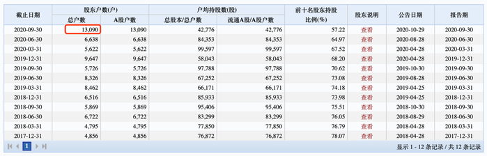 由于股价不断创出新高,投资者也不断增多。其最新三季报数据显示,最新股东为13090户,这一数字较2020年中期的6638户大增6452户,接近翻倍。