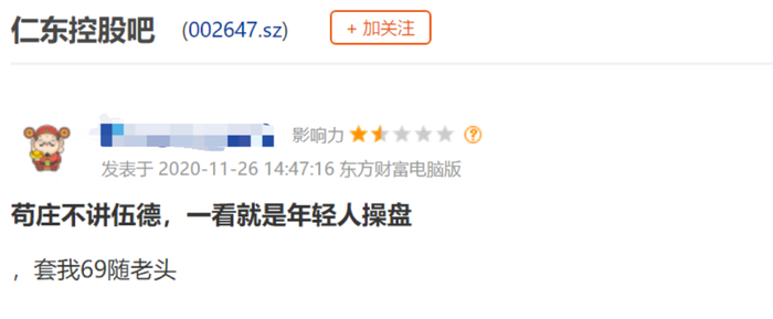有网友在股吧直言:“赔惨了!”还有网民直言:“庄家不讲武德,一看就是年轻人操盘。”