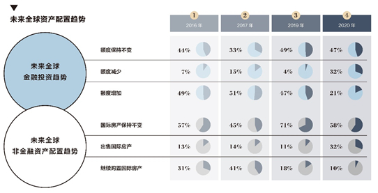 全球资产配置热情褪去,未来保持观望或进一步收缩。疫情导致全球经济不确定性增加,高净值人群未来全球配置总体呈减弱态势。