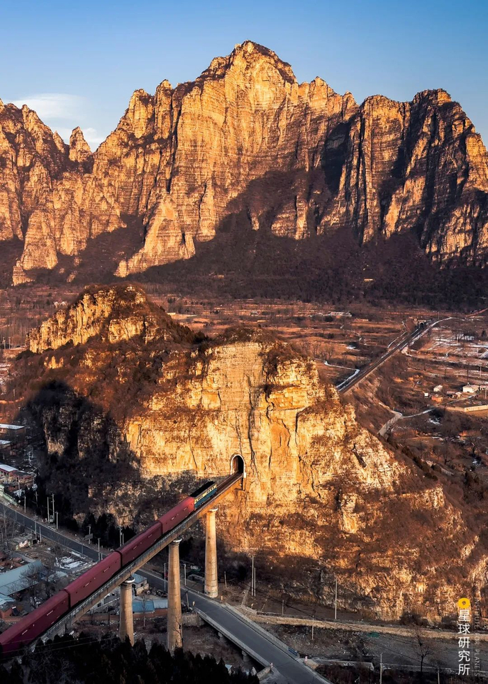 (请横屏观看,侯月铁路穿越太行山,摄影师@邓国晖)