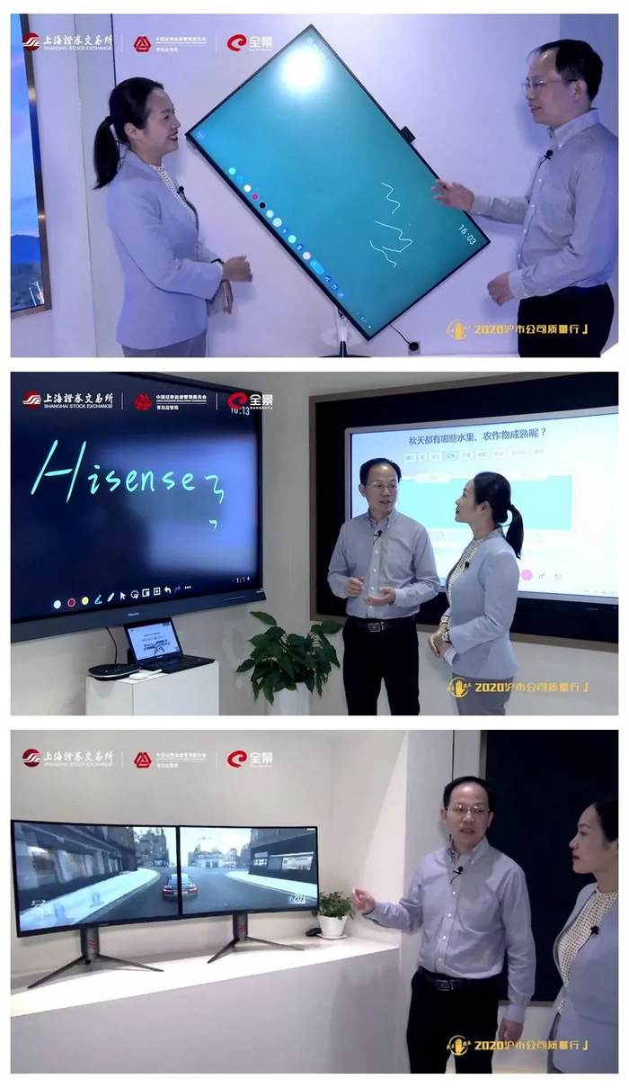 近日,上海证券交易所携手全景网共同推出“诚实守信 做受尊敬的上市公司”走进海信视像暨全景云调研特别节目。海信视像(600060)的实际控制人是山东省青岛市国资委,主要从事显示产品研发、生产、销售,以及基于智慧显示终端云平台运营服务,为消费者提供综合的显示方案的上市公司。本期全景云调研将带领投资者深入走进这家中国彩电市场连续16年市占率第一的行业龙头上市公司,探寻其发展历程和转型路径。