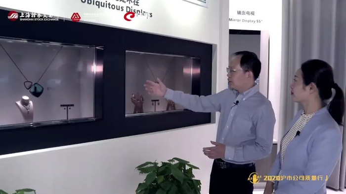 走访过程中,展厅内一块完全透明的橱窗展示电视引起了我们的关注。“这种透明的电视还真是第一次见到,它的作用是什么?”全景编导问。李敏华介绍说,这款产品的透明屏幕可以用于商品展示并同时利用VR(虚拟现实)技术现场展示穿戴效果,比如名贵珠宝的销售,无需实物取放就能实现虚拟佩饰效果的实时展示。
