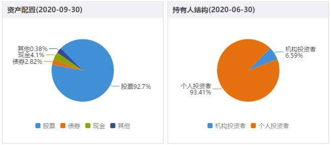 20Q3股票资产占净值比92.70%;债券2.82%;现金4.10%。