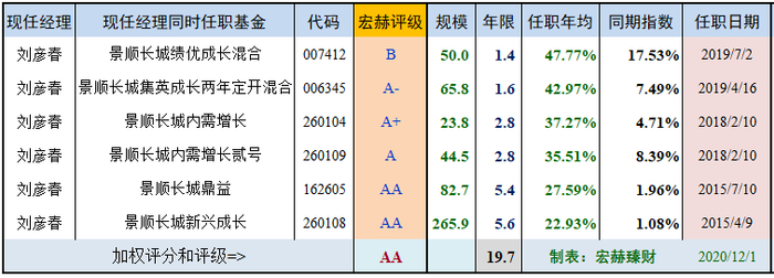 现任经理刘彦春先生同时管理着6只基金的叠加19.7时间加权评级为【AA】。目前刘彦春经理【是】该公司权益投资决策委员会成员。任职总经理助理兼研究部总监。