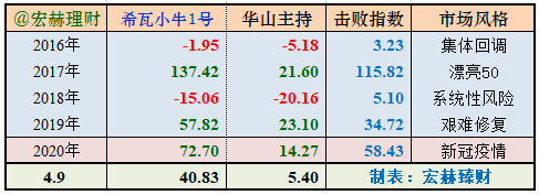 我们再来看看其有效代表产品与“华山主持”年度收益率的对决记录