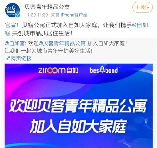 令市场稍感宽慰的消息是,几乎与蛋壳暴雷事件同期,自如于11月30日宣布战略并购贝客青年精品公寓。并购完成后,自如将在北京、上海、广州、深圳、南京等城市运营50余个集中式公寓项目。对此,地产分析师严跃进认为,此类并购成为今年长租公寓降温潮中的一道曙光,说明长租公寓依然有优秀的企业,类似收购也说明长租公寓发展的步伐依然不停滞。