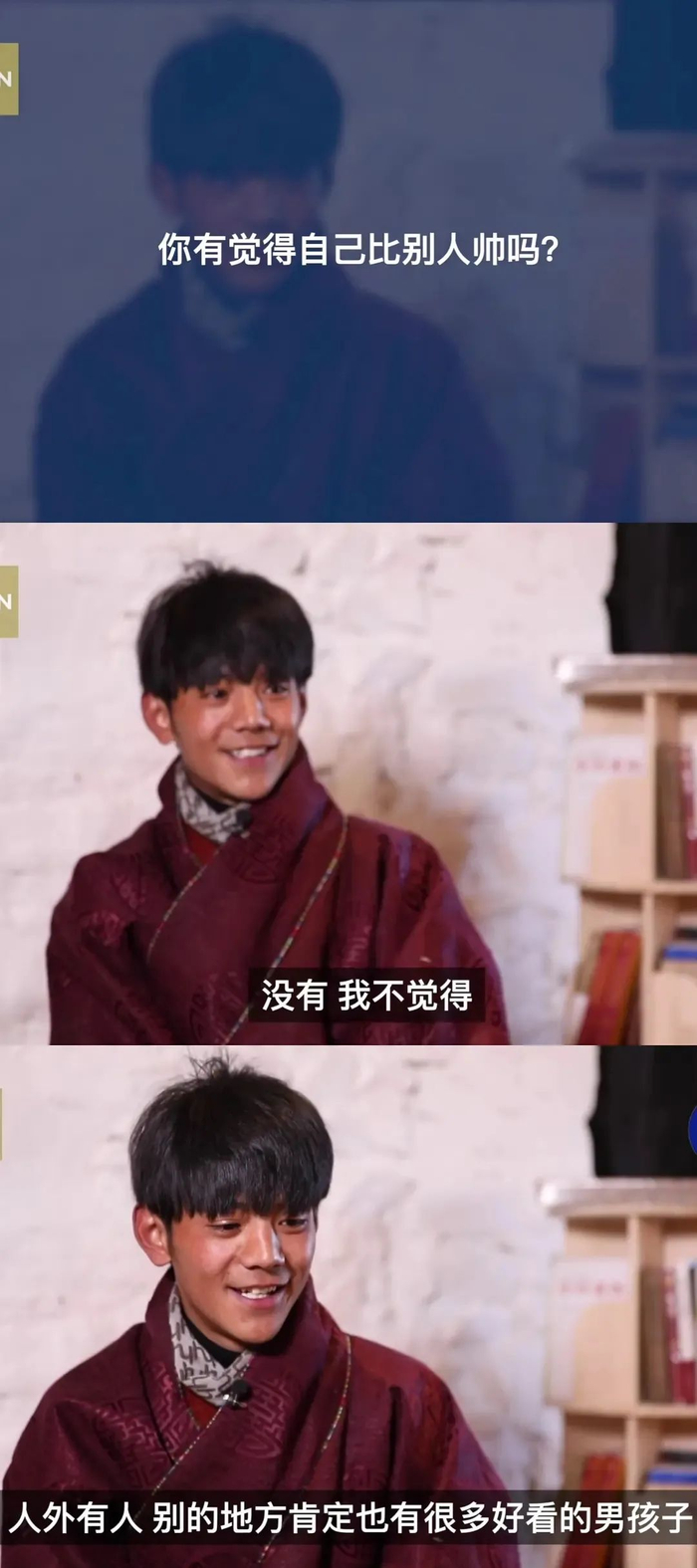 因为当丁真在采访中被问到自己是不是很帅时,他回答到:“我不觉得自己很帅,人外有人,别的地方肯定有很多比我好看得多的男孩子。”