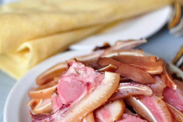 小时候在摊上用几个钱买猪头肉,白切薄片,放在干荷叶上,微微洒点盐,空口吃也好,夹在烧饼里最是相宜,胜过北方的酱肘子。