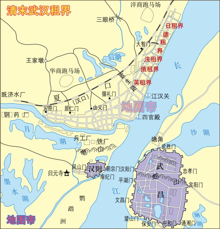 汉江发生改道之前,长江北侧只有汉阳,和武昌相对。改道之后,入江口一带满足建立航运码头的条件,汉口便应运而生,从汉阳分离出来。汉口在明朝嘉靖年间才正式设镇,但是借航运之利,汉口的商贸业发展极为迅速,很快强势崛起。