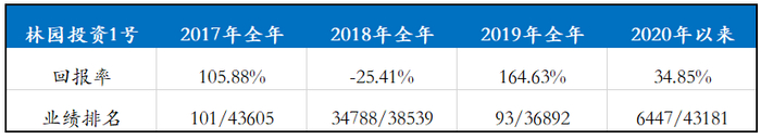 大家可以注意到,林园投资1号在2017年和2019年的业绩,在几万只私募基金产品中都排在前100左右,这确实很是难得,但2018年的业绩,几乎要垫底了。
