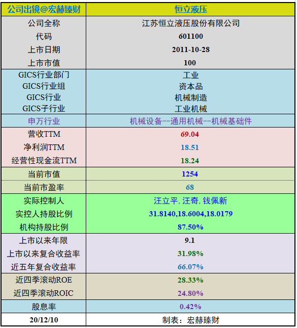 恒立液压自上市以来9.1年,年均复合收益率为约31.98%。截止当前评测日近五年年均复合收益率为66.07%。