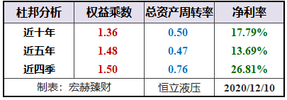 宏赫臻财建议关注未来杜邦指标趋势呈现:【低杠杆或适度杠杆(1.2-3)+周转率接近或大于1且有向上趋势+稳健增长的中高净利率>15%】
