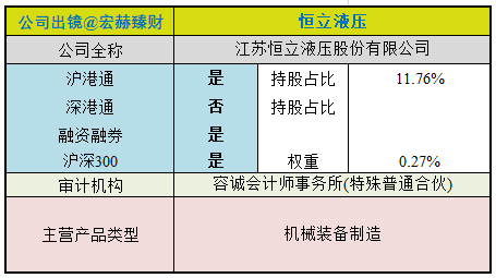 恒立液压营业收入排名27/309;归母净利润排名3/309。