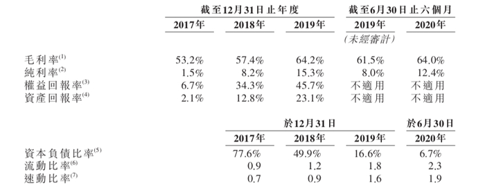 根据蓝月亮招股书,2017年、2018年、2019年及2020年上半年,蓝月亮分别实现营收56.32亿港元、67.68亿港元、70.50亿港元及24.36亿港元;同时期内,蓝月亮的净利润分别为0.86亿港元、5.54亿港元、10.79亿港元及3.02亿港元。