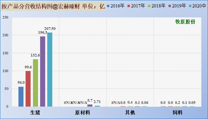 牧原股份二十多年来专注生猪养殖,公司2020年中报中生猪业务占比98.7%。营收达210.3亿元,同比增长193.76%,主要系生猪价格持续高位运