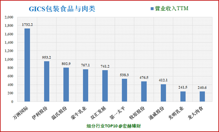牧原股份在GICS“包装食品与肉类”子行业中总市值排名2/146。