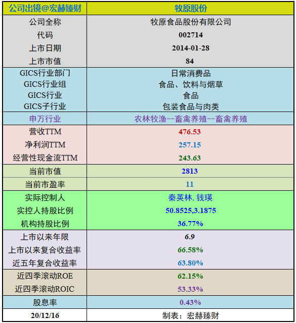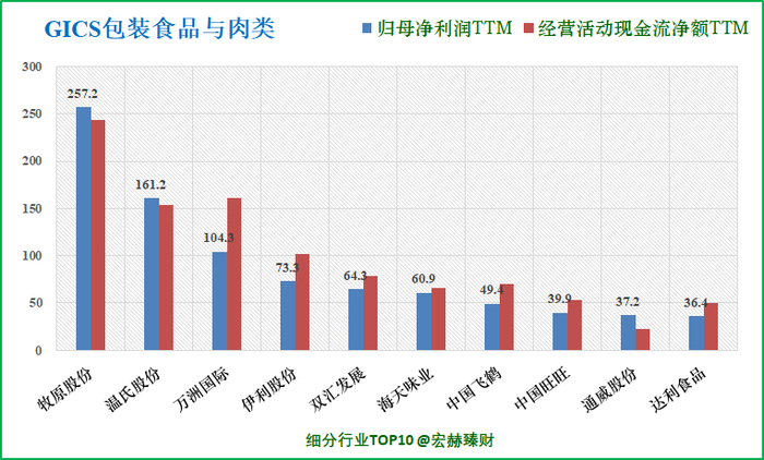 牧原股份在GICS“包装食品与肉类”子行业中营业收入排名7/146;净利润排名1/146;