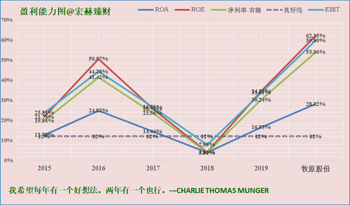 牧原股份盈利能力很强。但会受到外部因素影响。公司19年来,ROE、ROIC盈利指标逐步走上优秀线,未来一致预期持续处于优秀线上。