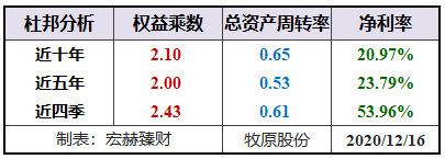 宏赫臻财建议关注未来杜邦指标趋势呈现:【低杠杆或适度杠杆(1.2-3)+周转率接近或大于1且有向上趋势+稳健增长的中高净利率>15%】