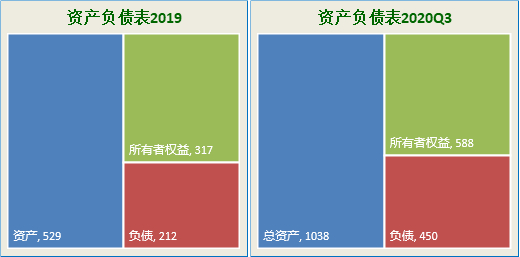[注]:2020年Q3总资产【1038】亿;净资产【588】亿,负债【450】亿;