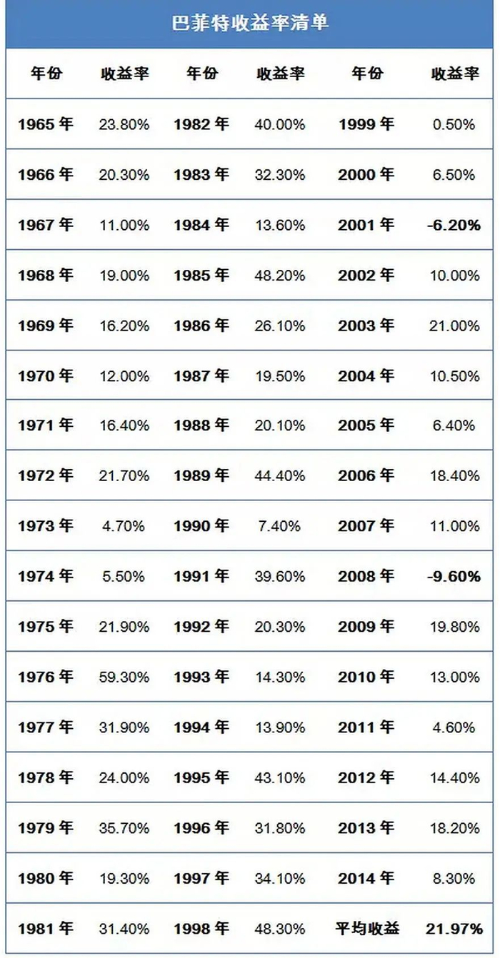 那巴菲特究竟在他几十年的投资生涯中做对了什么事情呢?以下是巴菲特50年的投资业绩: