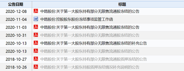 就说这几个月吧,先是今年8月份,上海浦东花木工业总公司就因合同纠纷,向法院提请财产保全申请,于是,上市公司第一大股东中路集团所持上市公司的部分股权便被冻结;10月28日,又因为与上海海怡建设(集团)有限公司的借款合同纠纷,中路集团所持股权被执行司法冻结质押和轮候冻结;10月30日,因为与上海优逸融资租赁有限公司存在合同纠纷,中路集团所持股权被执行轮候冻结;12月4日,则因为和上海和荻投资中心(有限合伙)的合同纠纷,而再此被执行轮候冻结。