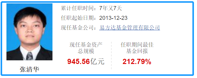 易方达基金是公募行业的标志性基金公司,张清华是易方达基金的标志性基金经理。他担任基金经理的时间有7年,现管理基金的总规模已达到945亿元。