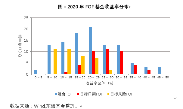 FOF表现亮眼,所有成立运作的FOF基金均获得正收益,其中混合型FOF平均收益率达到25.75%,收益率中位数为21.15%;目标日期FOF基金平均收益率达28.96%,收益率中位数达27.97%;目标风险FOF基金平均收益率达到17.31%,收益率中位数为13.55%。