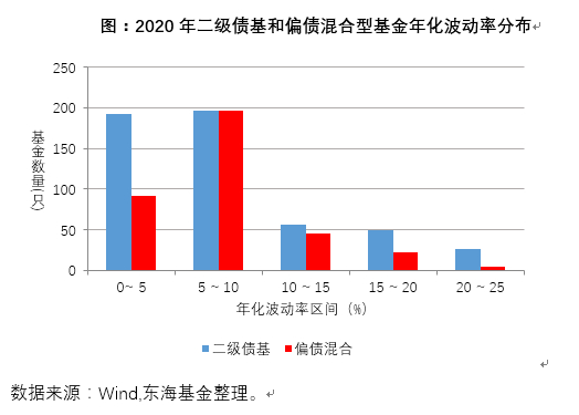 二级债基、偏债混合基金今年以来平均波动率分别为11.86%、9.88%,相比纯债基金高,与其投资可转债和股票比例较高有关。