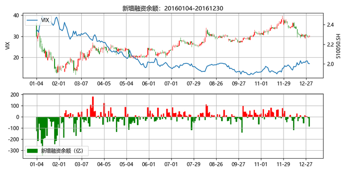 2016年的波动率指数可以分为两部分:①年初两次熔断至一月末市场企稳,波动率出现大幅度拉升,市场风险偏好明显降低,波动率处于高位;②指数企稳之后,开启震荡向上的走势,市场情绪修复,波动率开始震荡下降的趋势。