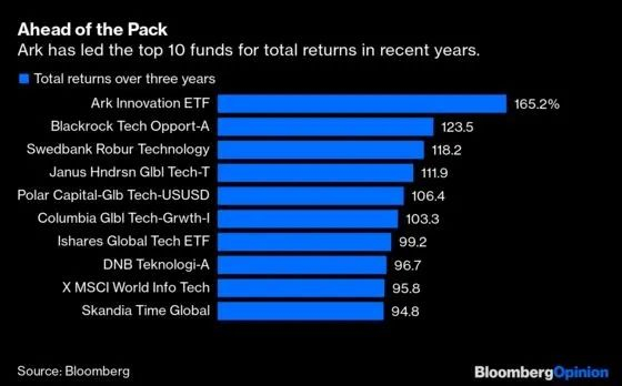 2020年,Ark Innovation的回报率达到三位数。在这样的情况下,伍德提醒自己的投资者,Ark的投资着眼于长线。她说,如果该基金达到预期目标,那么五年的年化回报率将超过20%。