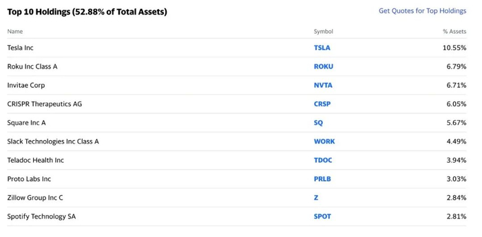 Ark Innovation持有的其他股票包括Proto Labs、2U和LendingTree。该基金的费率为0.75%。