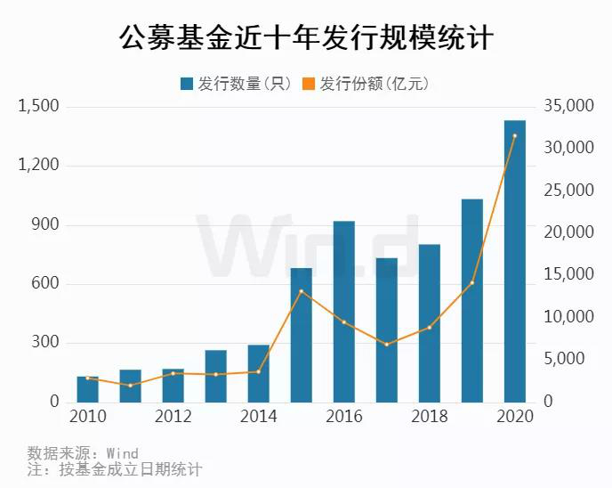 数据不会撒谎。据Wind资讯数据显示,截至年底,基金总规模历史性的达到18万亿元,新发基金规模超3万亿元,超过此前三年之和。