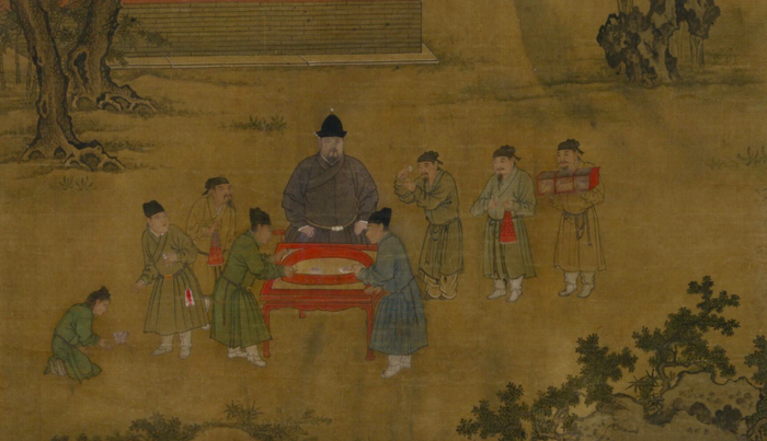 游戏开始,朱瞻基居中端坐,宦官、侍从、童仆侍奉左右。一只鹌鹑倒下了,还有千千万万只鹌鹑站起来。毕竟人家朱瞻基缺的不是钱,是快乐。