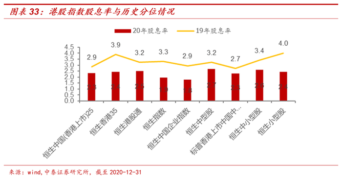 受疫情影响,2020年各个指数的股息率也有较大下滑,恒生小型股指数下滑程度最多。