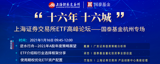 1月16日9:45上海证券交易所“十六年十六城”ETF高峰论坛·杭州站|国泰基金专场