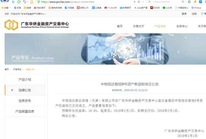 同普信有关的私募基金类似,在上述金交所发行的产品不排除有“自融”嫌疑。譬如记者获得的资料显示,以“中恒信达智信系列资产收益权”产品为例,发行人为中恒信达商业保理(天津)有限公司(现更名“中恒信达信息咨询(吉林)有限公司”),其中普信的定位是“综合服务商”,备案于侨金所,募资用于补充中恒信达的流动资金。