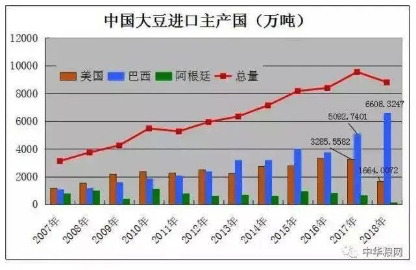 不过当时大豆需求低,后来越来越高,到现在每年需要上亿吨,严重依赖美国和巴西: